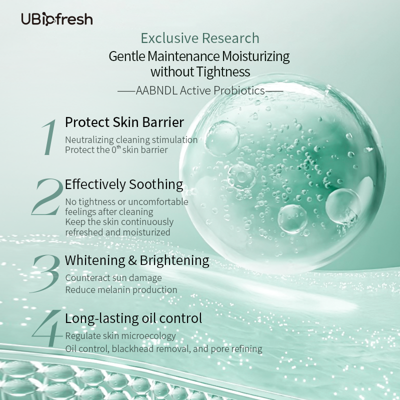 Derived from Lactobacillus, a probiotic that has coexisted with the human body for thousands of years. The active biological essence obtained through the modern biological fermentation technology independently developed by UBiofresh has super-strong repair, anti-inflammatory and antibacterial capabilities. It can repair damaged cells and at the same time enhance the skin's self - healing ability and strengthen the micro-ecological barrier of the skin, making the skin healthier and more vibrant.